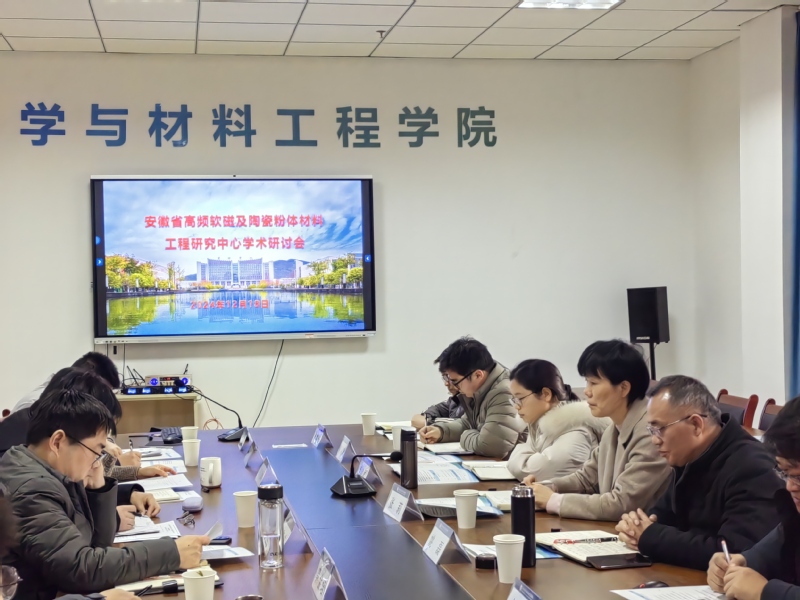12月18日,安徽省高频软磁及陶瓷粉体材料工程研究中心(下面简称工程中心)2024年学术研讨会在必赢76net官网化学与材料工程学院会议室举行。校长张莉,校科研处处长姚磊,化材学院班子成员,工程研究中心技术骨干,化材学院有关教师参加会议。