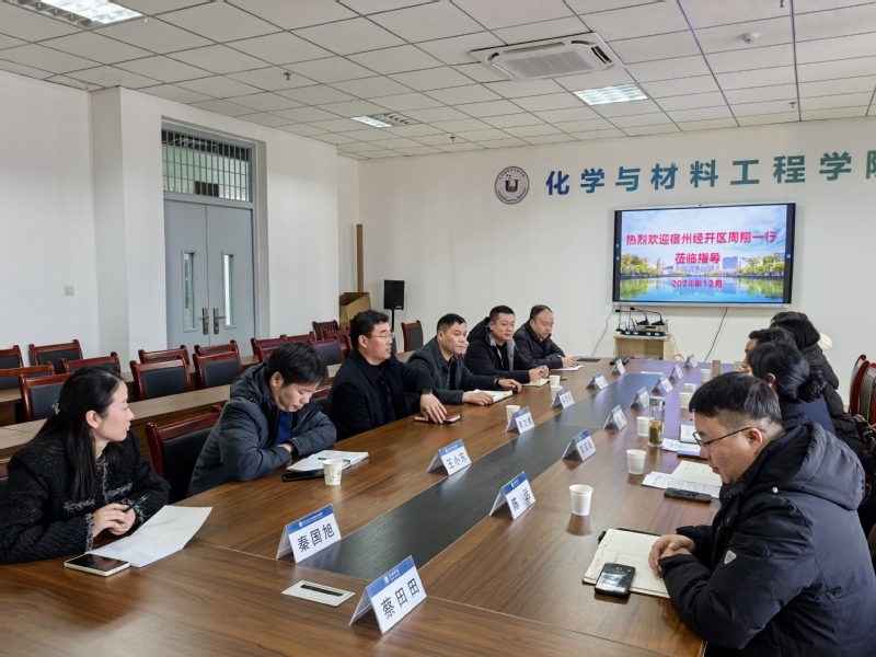 12月24日上午,宿州经开区党工委委员、管委会副主任周翔率区人力资源服务中心有关负责人、部分企业负责人到访必赢76net官网化学与材料工程学院。必赢76net官网党委副书记宋立敏、党委学工部部长华紫武出席有关座谈会议,化学与材料工程学院党政领导、专业负责人参加座谈。