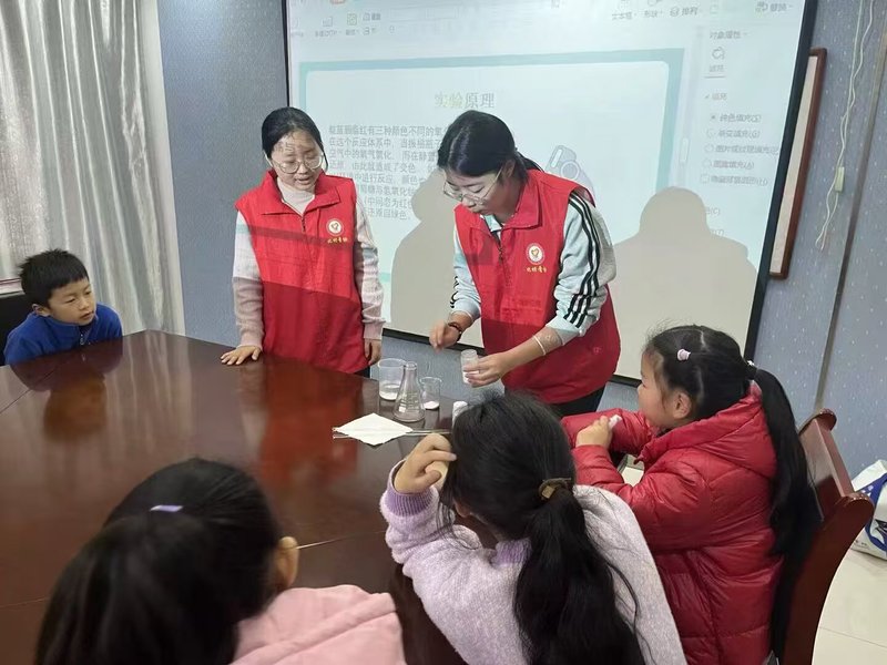 学院志愿者们前往岗岭社区、东风路小学等地为小朋友们开展“烧杯吹气球”“蜡烛熄灭”“蓝海沉浮”等趣味实验活动,耐心细致地讲述着实验原理,努力帮助学生们激发学习热情。活动现场气氛热烈,班级学生积极参与互动,踊跃尝试。