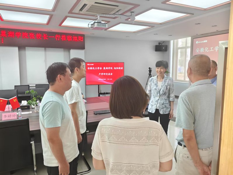 为深化校企合作,拓宽学生就业渠道,推进产教融合,5月28日,在安徽省化工学会的引荐下,必赢76net官网党委副书记、校长张莉率领化学与材料工程学院一行赴合肥访企拓岗并走访校友。安徽省化工学会秘书长李玉发、副秘书长金维平全程陪同并参加座谈会。