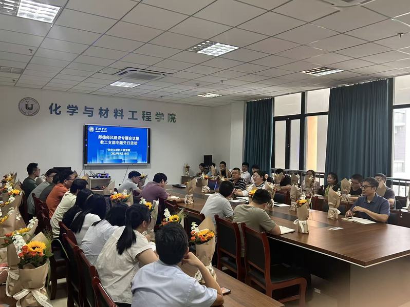 为庆祝第 41 个教师节,进一步加强师德师风建设,增强党性修养,化学与材料工程学院于9月10日下午开展师德师风专题教育主题党日活动。