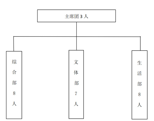 第十三条 经济与法学学院学生会设置三个职能部门,分别是综合部、文体部和生活部,各职能部门成员设负责人两至三名,工作人员若干名。院学生会工作人员由自我推荐,经团总支审核后确定。