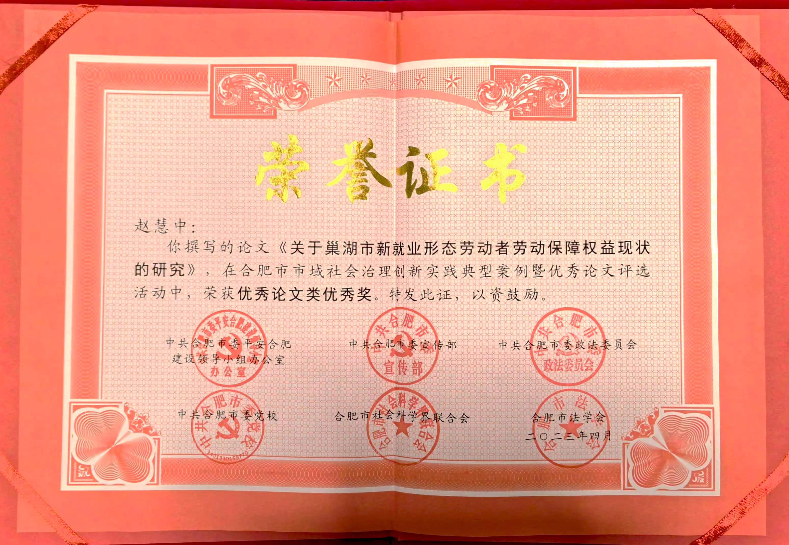 合肥市市域社会治理创新实践典型案例暨优秀论文评选“优秀论文类优秀奖”