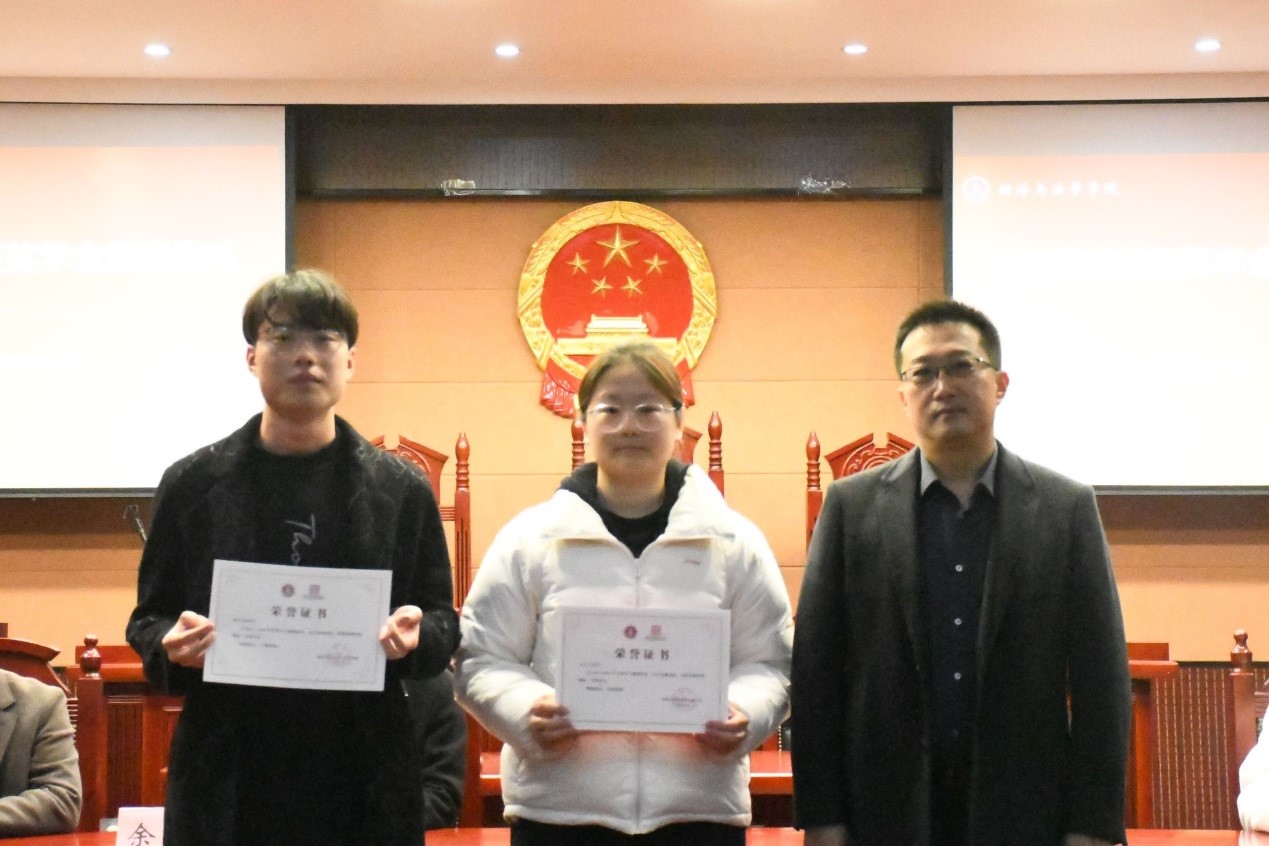 为表彰优秀,鼓励先进,帮助法学专业学子们规划职业目标,助力学生成长成才,经济与法学学院于11月27日下午在模拟法庭举行明征奖学金颁奖仪式和职业规划与导航座谈会。会议由经法学院副院长施玮主持,明征律师事务所周锋、侯昌飞、余伟律师、辅导员季鹏程出席,23法学明征班全体同学参加。