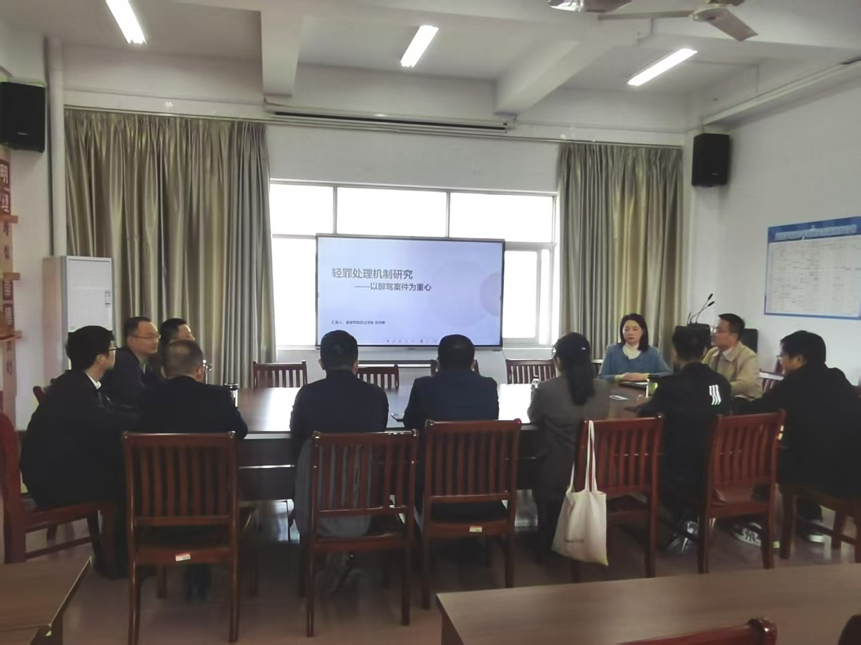 讲坛伊始,何沛军博士以传统醉驾治罪模式为切入点,提出了轻罪处理机制的概念,并阐释了轻罪处理机制的理论及其实践检视,最后提出轻罪处理机制的完善对策。在互动环节,与会教师就研究方向、研究内容、相关理论以及如何处理教学和科研的关系等方面与何沛军博士进行了深入交流。