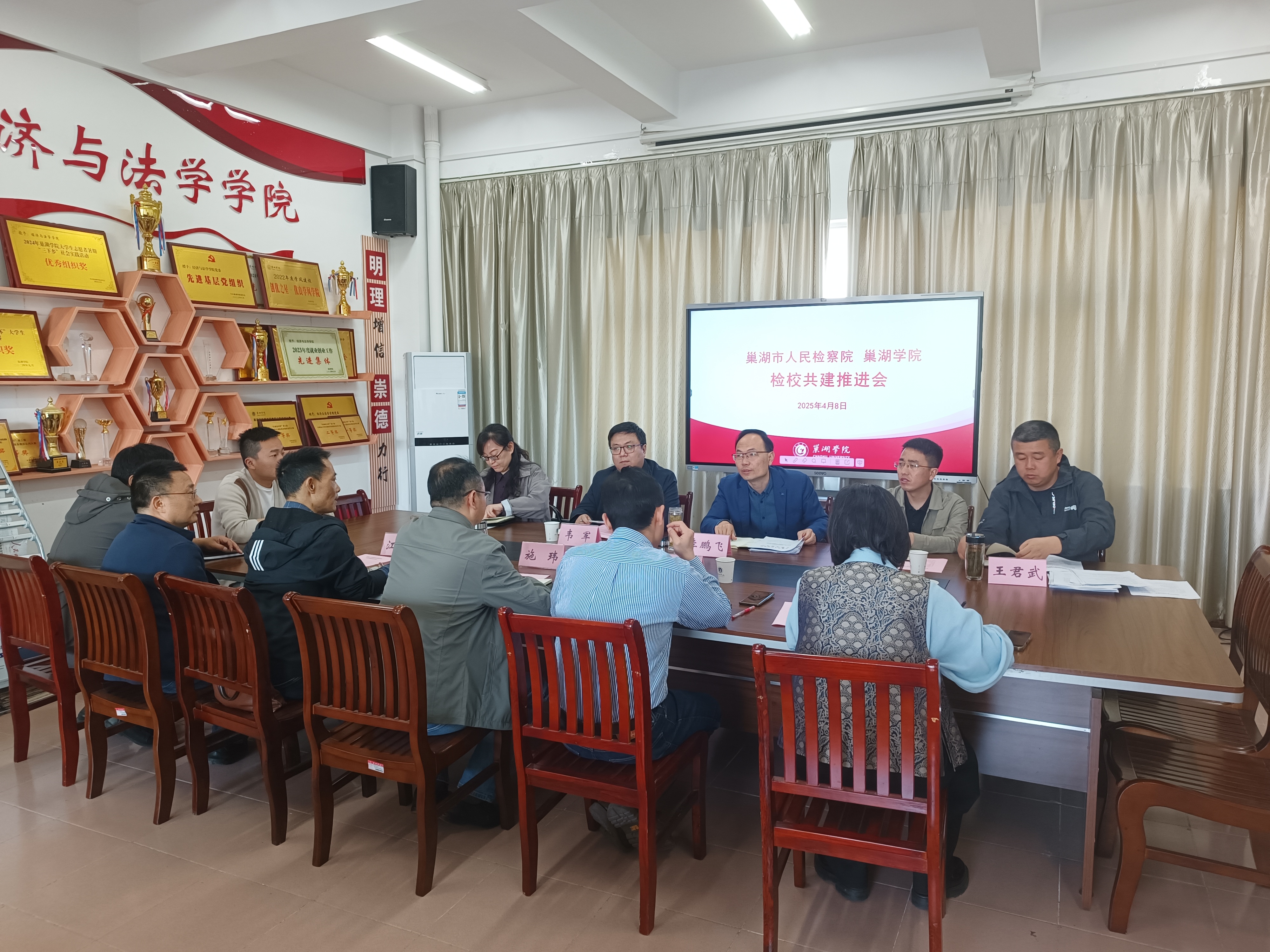 4月8日上午,巢湖市人民检察院党组书记、检察长李鹏飞,副检察长王君武、韦军,政治部主任刘传龙,研究室主任李晓锦一行来校就深入推进“检校共建”相关事宜进行洽谈。经济与法学学院党委书记石庭、副院长施玮、党委副书记解雪梅、法学系主任褚业娴以及法学系全体教师参与座谈。