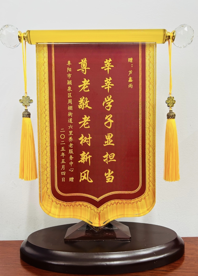 芦鑫雨的细致服务获阜阳市颍泉区周棚街道六里养老服务中心高度评价,院方在感谢信中特别提到,志愿活动“为老人们带来温暖与活力,彰显年轻一代的责任担当”。锦旗与致谢信的双重认可,印证了她将党员使命转化为实际行动的成效。