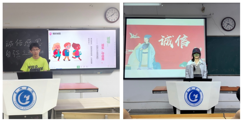 各班级积极组织演讲比赛,选手们结合学习生活实际,以个人征信、诚信考试、道德规范等方面为切入点,运用历史典故、暖心故事、鲜活案例,生动诠释了诚信对新时代大学生的重要作用。他们声情并茂,时而激昂澎湃,时而娓娓道来,引发在场观众的强烈共鸣,现场不时响起阵阵热烈掌声。这不仅为学生搭建了展示自我的平台,更是将诚信的种子深植于每个人心中,激励他们在未来的学习生活中,以诚为本,以信待人。