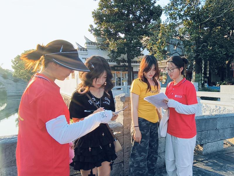 实践团采用“定点+走访”模式,通过在古镇人流密集区设立展台、分组走访商户与游客等方式,重点围绕公众环保法律认知、古镇生态现状和相关政策落实情况以及改进意见和建议等内容进行问卷调研。活动中,团队成员耐心引导群众填写问卷,主动询问他们在日常生活中遇到的环境问题,为后续普法和撰写调研报告积累一手数据,助力将“民意温度”转化为“政策力度”。