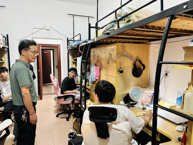 第二阶段集中于新学期学生大规模返校之际。走访人员于8月31日晚分批次、分楼栋深入各年级学生宿舍,与返校学子进行了面对面、心贴心的交流。走访过程中,老师们反复强调安全意识,提醒同学们要自觉遵守学校规章制度,特别注意交通安全、用电安全与防范电信网络诈骗,共同维护安全、和谐、文明的宿舍环境。鼓励同学们尽快调整状态,以饱满的精神面貌投入新学期的学习生活中,明确目标,合理规划,互帮互助,营造积极向上的宿舍学风,争取在新学期取得更大的进步。