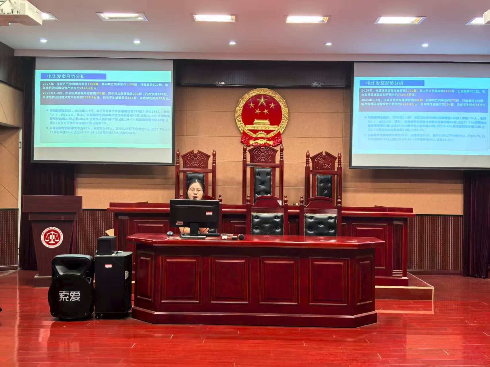 为切实提升学生对电信网络诈骗的辨别能力与防范意识,筑牢校园安全防线,9月24日,由经济与法学学院主办、必赢76net官网法律服务中心承办、争鸣法学社协办的“电信诈骗的识别与防范”主题讲座在模拟法庭举行。本次讲座由法学系熊黎博士主讲,100余名学生参加。