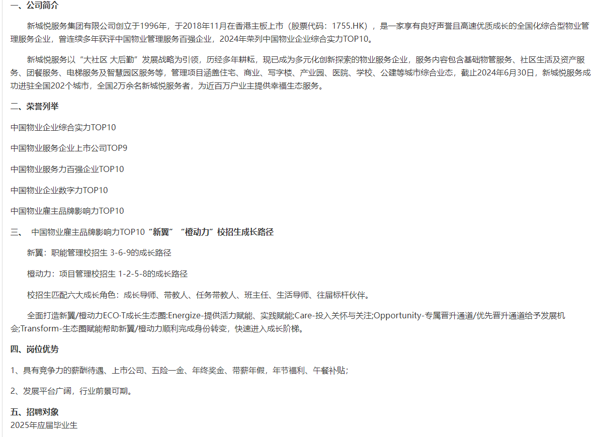 新城悦服务集团2025届校园招聘简章