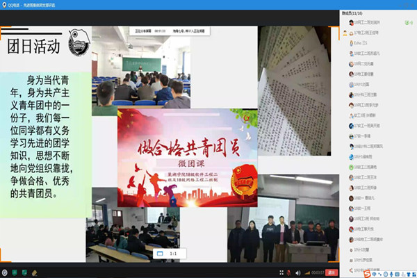 为引领学院广大青年学子树立和践行社会主义核心价值观,充分发挥先进班集体和团支部的示范作用,检验“班团一体化”制度实施效果,4月17日下午,信息工程学院通过线上汇报的方式开展“先进班集体、先进团支部”评选活动。信息工程学院团总支书记刘小燕、团总支副书记何平老师以及全体辅导员担任评委。19-17级共19个班集体参与汇报评选。