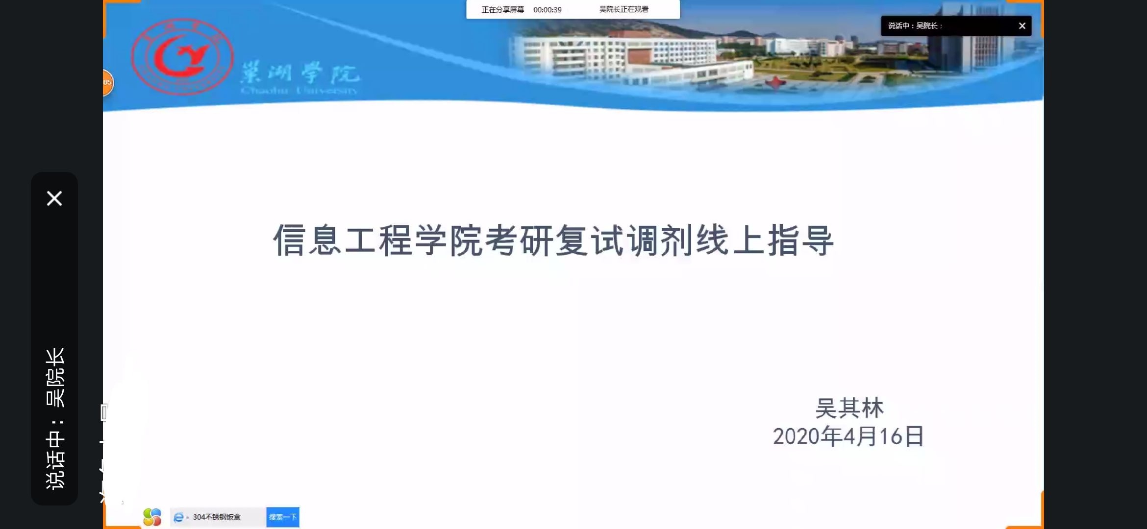 考研国家线公布以后,学院领导积极指导考研达线学生。4月16日上午信息工程学院副院长吴其林在QQ群线上为准备复试和调剂的同学们解疑答难。