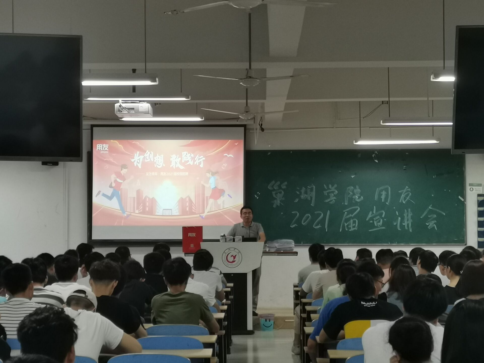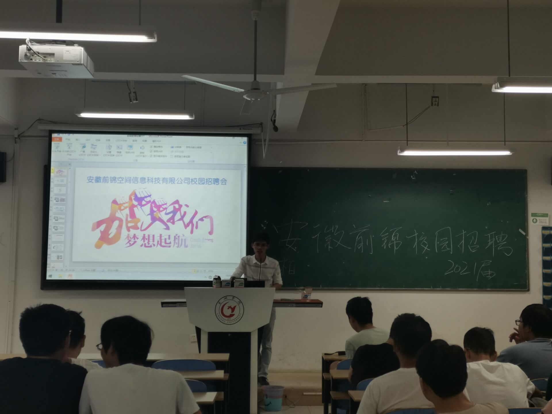为全力推进疫情防控常态下的就业工作,搭建用人单位和广大毕业生之间高效、规范的双选平台,为毕业生提供高效优质的就业信息服务,切实提高学院就业率和就业质量,9月9日下午2点30分,必赢76net官网大学生就业指导中心联合信息工程学院在慎思楼中201举办2021届毕业生校园秋季招聘宣讲会。参与本次招聘宣讲会的有安徽用友软件有限公司、安徽前锦空间信息科技有限公司等大型知名企业。校党委委员、信息工程学院院长郑尚志莅临会场,信息工程学院就业联络员梁腾飞负责现场组织本次活动。