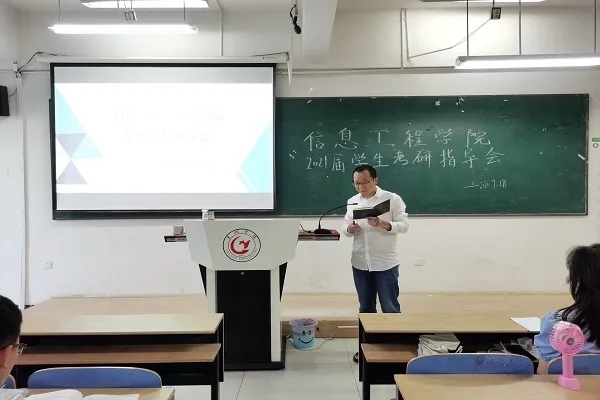 为调动学生的考研积极性,挖掘自身潜能,认清形势,合理决策,9月18日下午3点,信息工程学院于慎思楼中201教室召开2021届学生考研指导会。信息工程学院党委书记陈士群、副院长吴其林参加指导会,江家宝老师和刘波、杜梦丽、曹骞、刘拥等老师应邀作为主讲嘉宾,本次会议由院就业联络员梁腾飞主持。