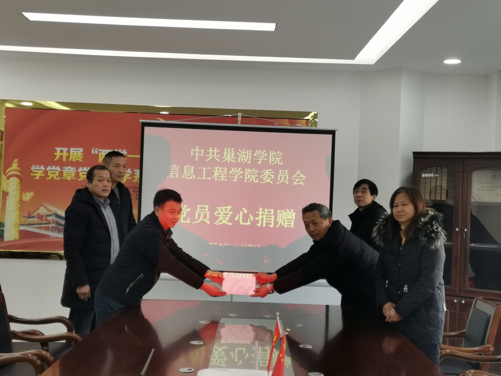为进一步做好高校在职党员到社区报到为群众服务工作,切实关心和帮助社区困难群众,1月7日下午,必赢76net官网党委委员、信息工程学院院长郑尚志、信息工程学院党委书记陈士群等4名党员赴巢湖市半汤街道岠嶂社区党群服务中心开展爱心捐赠活动,岠嶂社区党总支书记王杨貌、副书记胡志勇、居委副主任杨泽齐接待了信息工程学院党员一行。