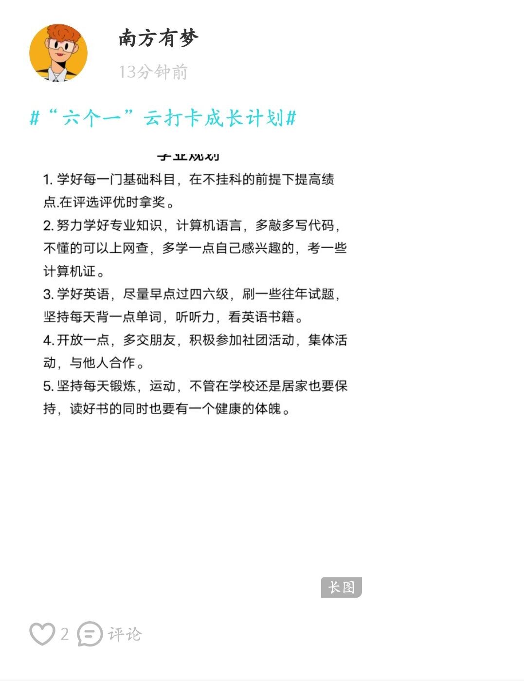 为引导青年学生德智体美劳的全面发展,做好科学规划,度过一个完美充实的寒假,提高自身的内涵,信息工程学院积极响应学校号召,组织为期23天的线上寒假成长计划主题活动。在“六个一”云打卡期间,信息学院学生互享读书心得、介绍家乡文化、制定学习计划、分享劳动日常、培养健康生活习惯、在寒假期间收获与家人相聚的幸福时光。