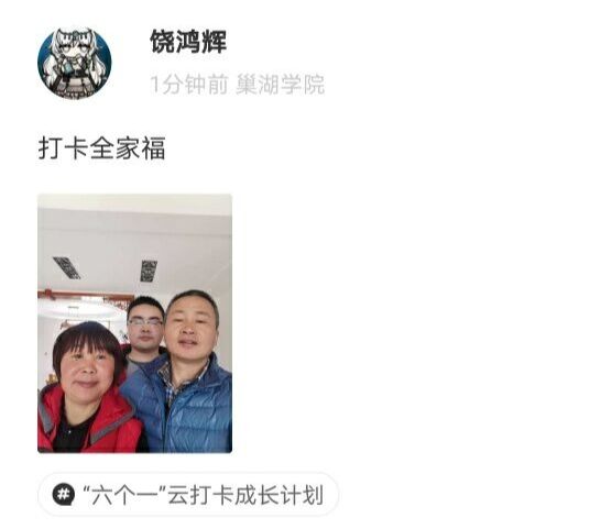 打卡一张全家福,记录一段美好的时光。“家”是人人向往的地方,是在外的游子魂牵梦绕的地方;家是一艘大船,装载着我们的快乐和幸福。春节与父母团圆,拍一张全家福,让幸福定格。在春节家人团聚的时,学院学生纷纷拍下一张满载家庭温馨幸福的全家福照片,记录充满温暖亲情的时光。