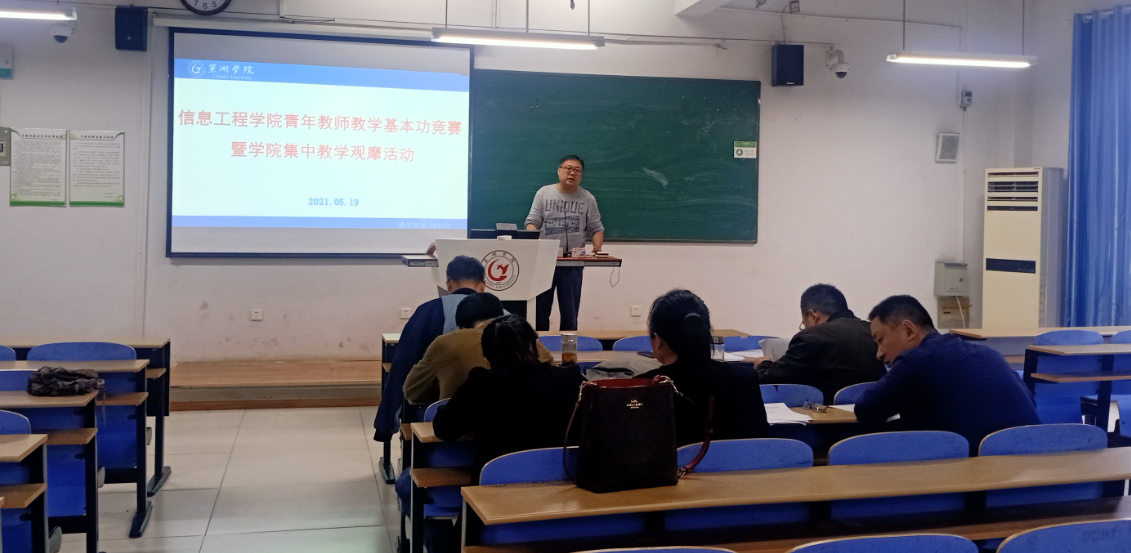 为了加强青年教师队伍建设,营造热爱教学、重视教学的良好氛围,鼓励青年教师加强教学基本功训练和提高教学水平,5月19日,信息工程学院在慎思楼中103教室举行了2021年度青年教师教学基本功竞赛。14位青年教师参加,副院长吴其林教授及学院专业教学指导委员会成员、教学督导组成员任评委,全体教师到场观摩。