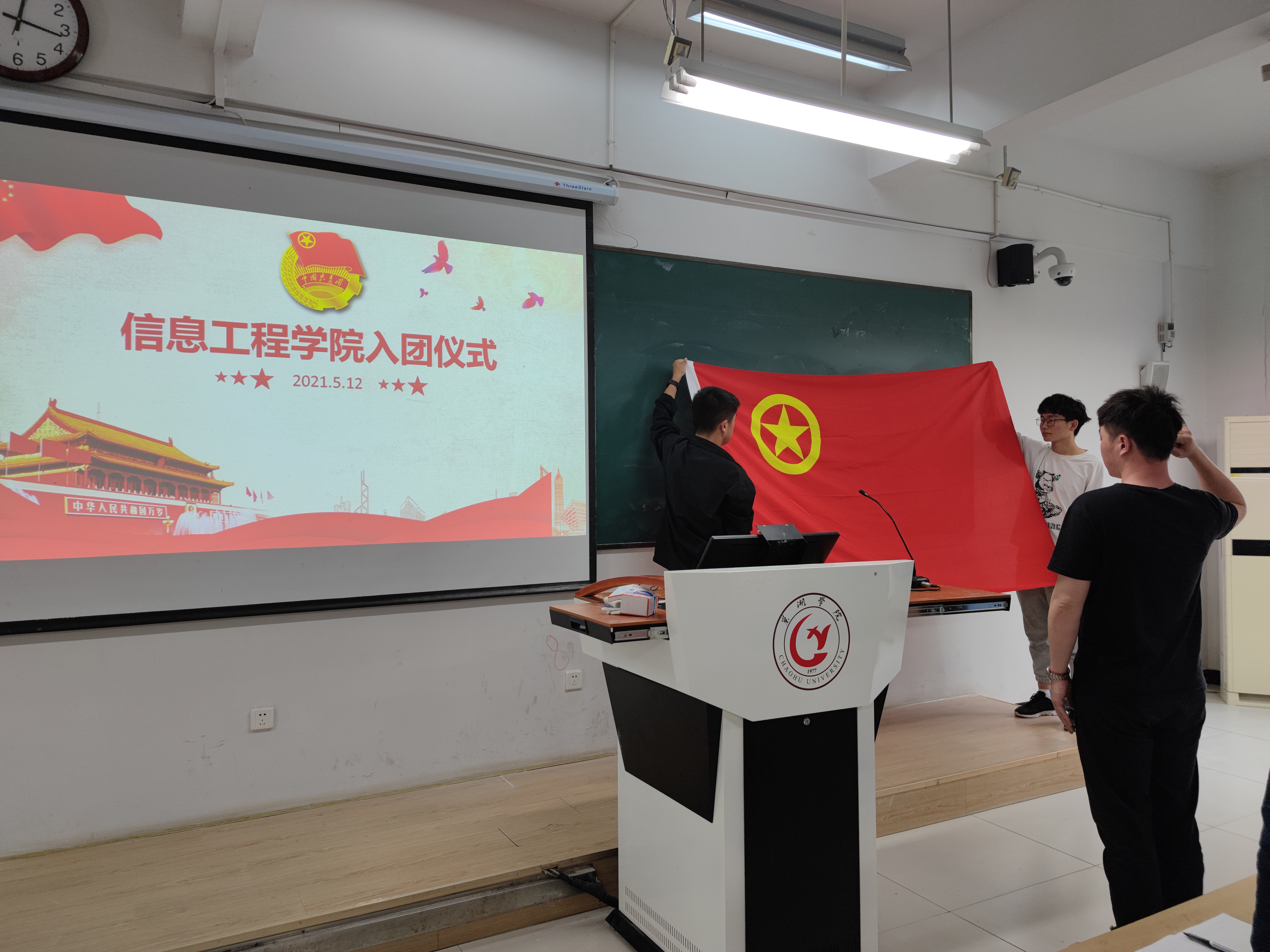 为加强学院共青团队伍建设,提高同学们积极进取的意识,以团员的标准严格要求自己,5月12日中午12点,信息工程学院于慎思楼中104教室举行信息学院团员重温入团仪式。参加会议的有学院团总支副书记何平,团总支、学生会、易班全体学生干部,18-20级各班团支书,此次会议由何平主持。