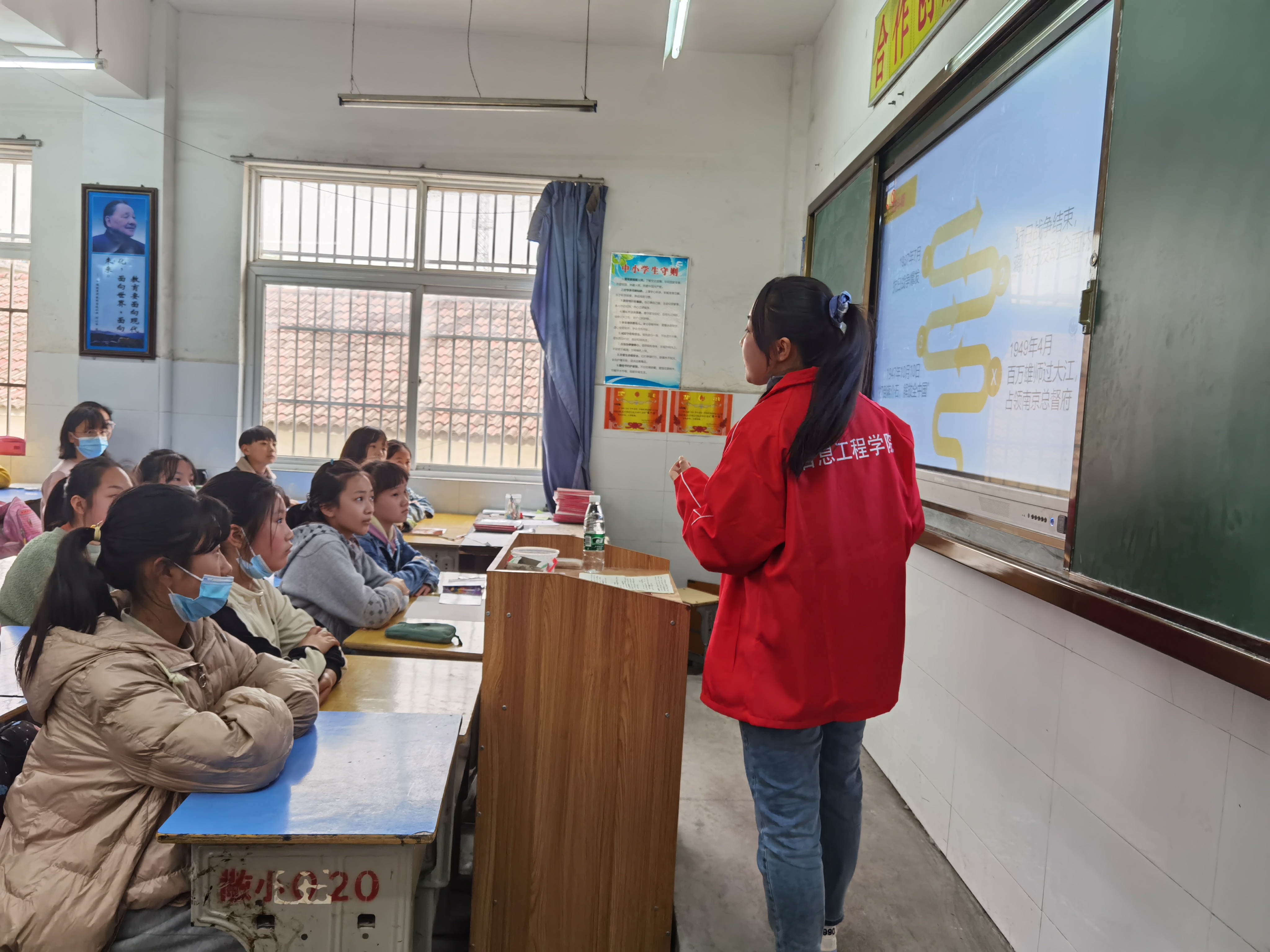 为培养大学生的奉献精神和服务社会的意识,支援乡镇地区教育和教学工作管理,利用大学生的知识丰富小朋友的文化生活。5月12日,信息工程学院青年志愿者协会开展支教活动,本次活动分为三队,分别前往散兵镇小学、岱山小学和胡岗小学开展支教活动。