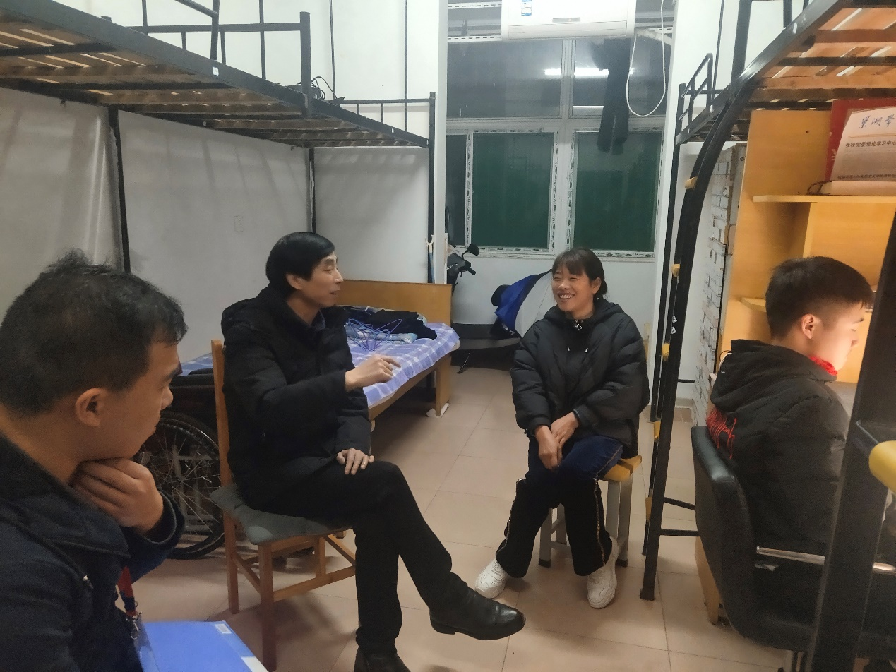 为了解新学期学生的思想动态、学习生活,提高学生的安全意识,3月11日19:00,信息学院院长郑尚志及全体辅导员深入寝室,开展宿舍走访活动,进一步了解同学们的宿舍生活情况。