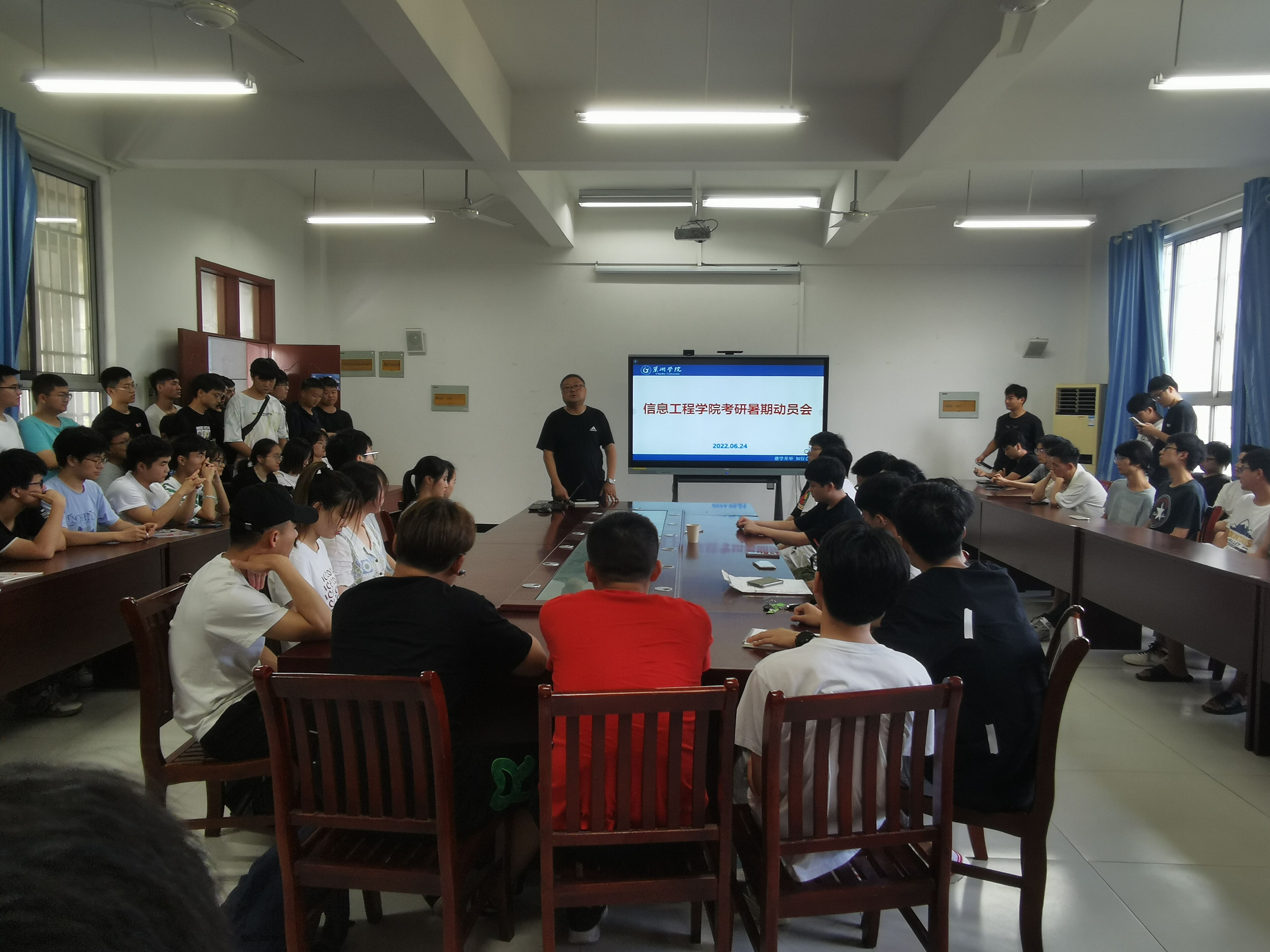 为进一步指导信息工程学院学子备战考研,坚定考研初心,做实、做细暑假留校学生管理工作,6月24日16:00,信息工程学院于慎思楼会议室召开暑期考研动员会,会议由信息工程学院副院长吴其林主持,信息工程学院辅导员、学院暑期留校学生参加了此次会议。
