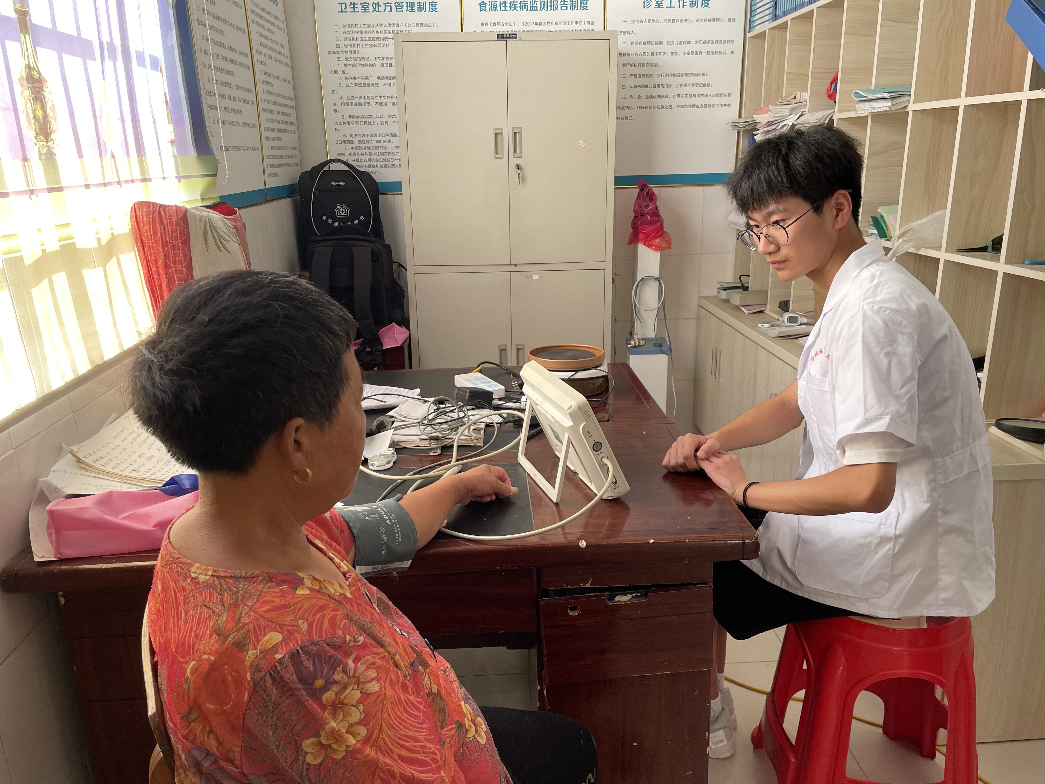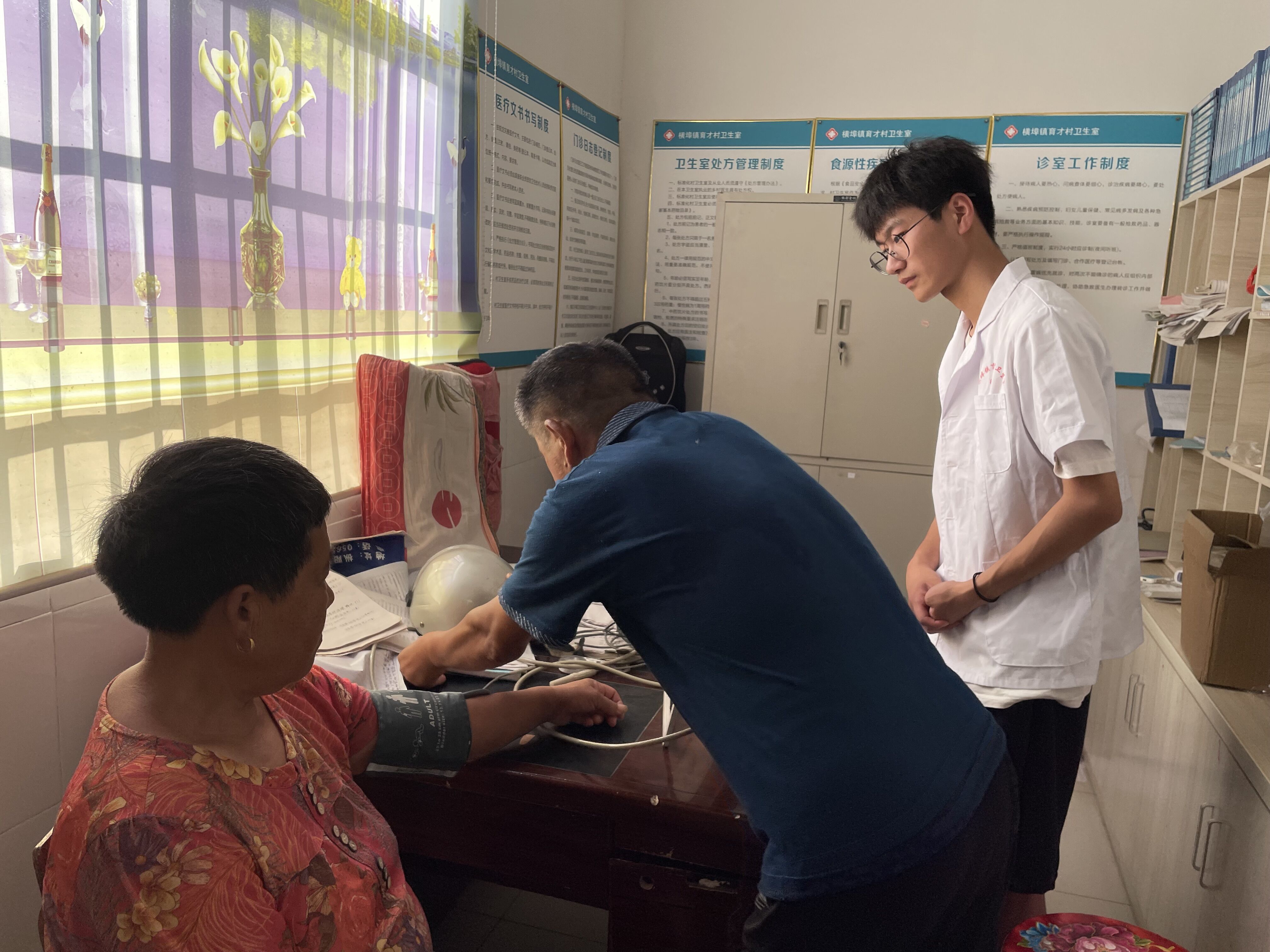 为助力乡村振兴战略实施,关爱农村空巢老人身心健康,响应党关于“推进健康中国建设”的号召,必赢76net官网信息工程学院赴枞阳县大学生乡村振兴团队于6月27日上午,在铜陵市枞阳县育才村联合当地卫生所开展为村内76位老人测量血压,暑期“三下乡”社会实践活动。