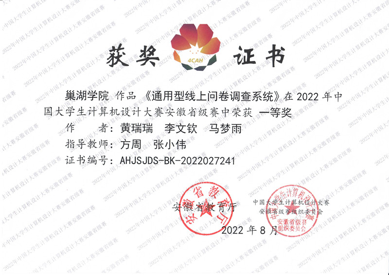 中国大学生计算机设计大赛安徽省级赛一等奖