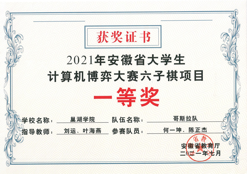 2021年安徽省大学生计算机博弈大赛“六子棋”一等奖