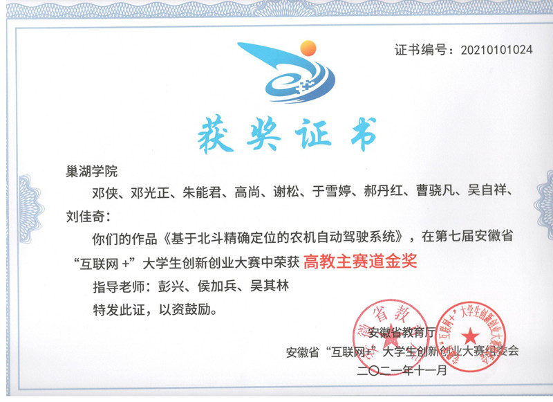 第七届安徽省“互联网+”大学生创新创业大赛高教主赛道金奖