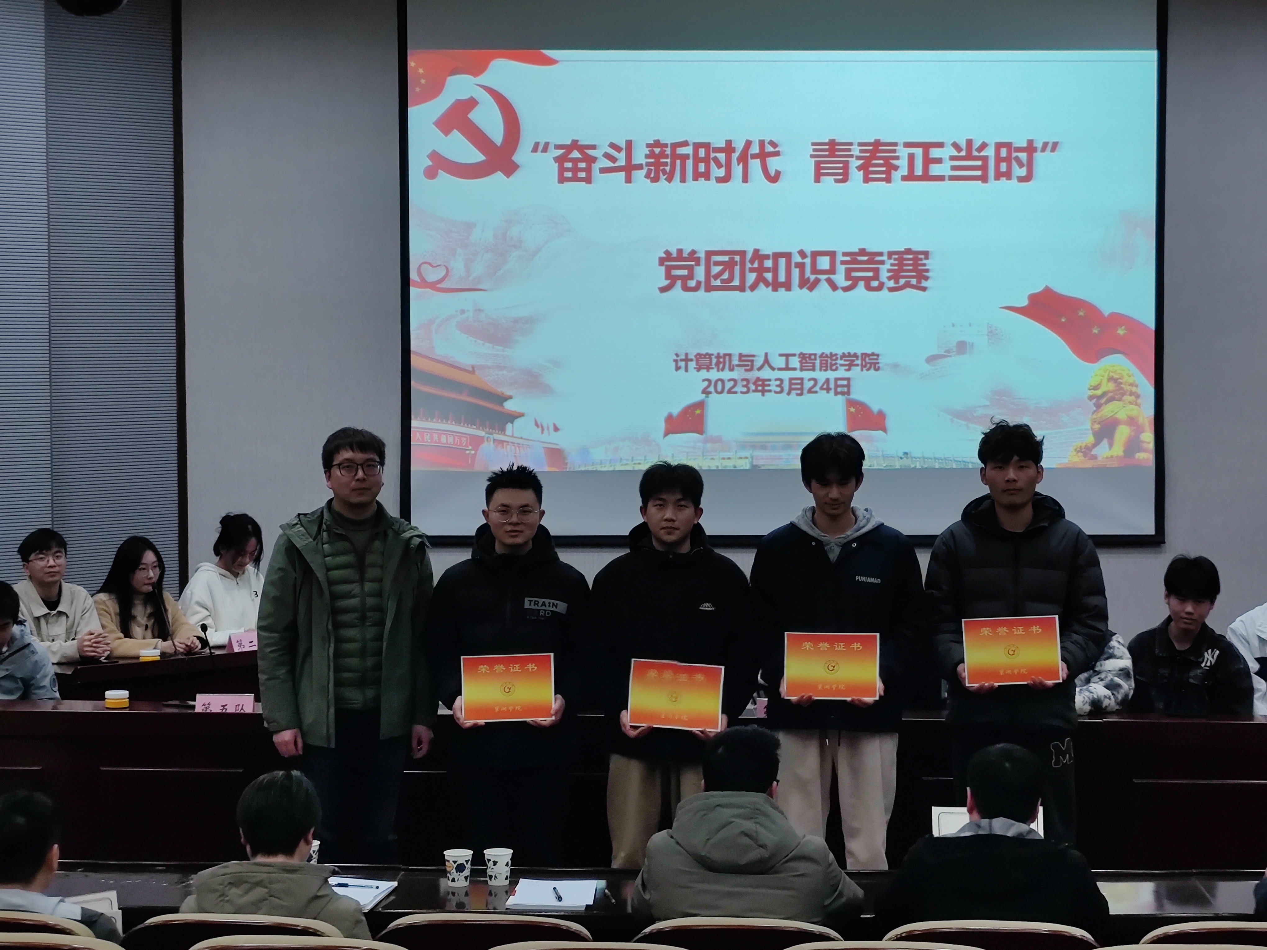 为全面贯彻落实党的二十大精神,丰富党员活动形式,激发基层组织活力,计算机与人工智能学院于3月24日中午在致知楼报告厅举办“奋斗新时代青春正当时”党团知识竞赛。