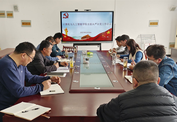 2023年4月14日下午,计算机与人工智能学院在学院会议室召开全面从严治党暨党风廉政建设工作会议,学院党委委员、科级以上干部、支部书记、组织员参会,会议由院党委书记王光富主持。