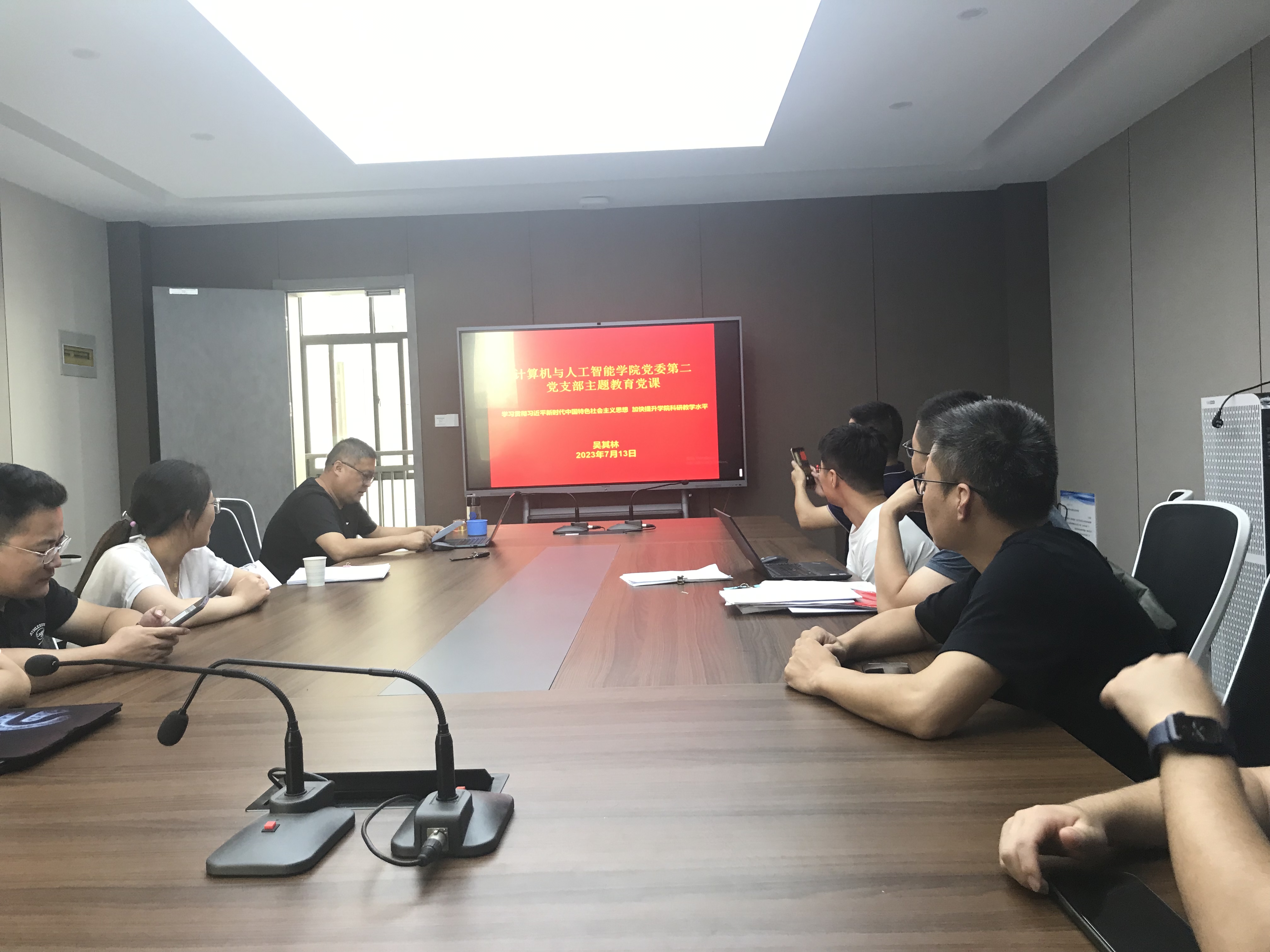 2023年7月13日,计算机与人工智能学院教工二支部在慎思楼南楼产业学院会议室开展支部活动,由院长吴其林主讲《学习贯彻习近平新时代中国特色社会主义思想加快提升学院科研教学水平》教育专题党课,支部书记洪兴勇开展理论学习会议。