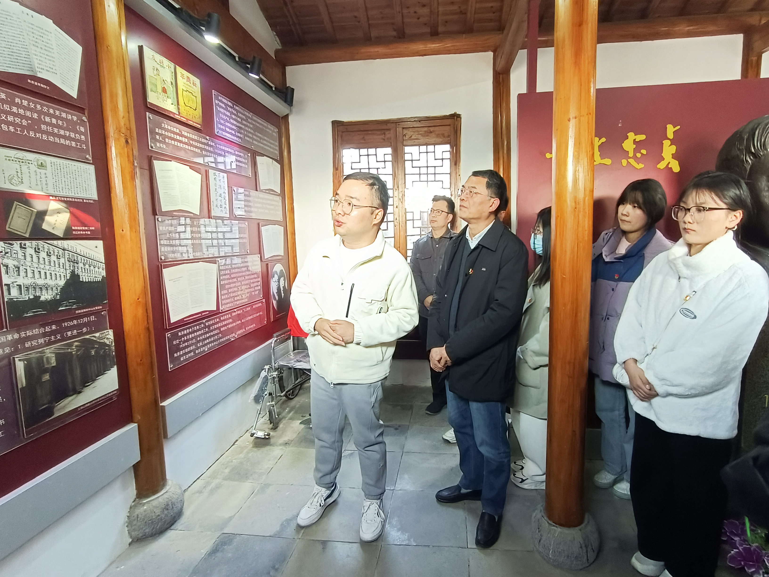 师生党员在现场讲解员的带领下参观了陈原道烈士故居。“雨花忠魂亮气节,红色血脉永赓续”,土地革命战争时期,陈原道两次遭国民党政府逮捕入狱,经受了严峻的考验,始终横眉冷对,坚贞不屈,保持了共产党人的崇高气节。