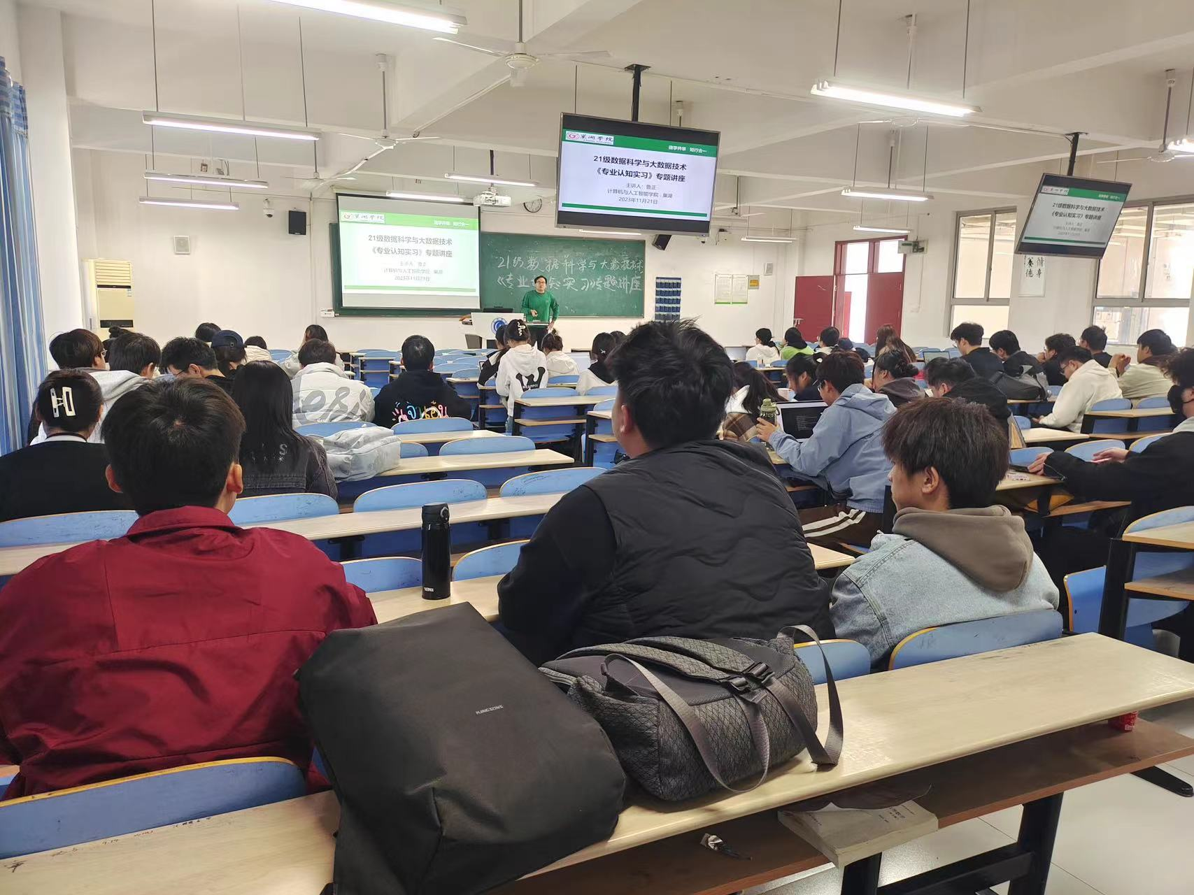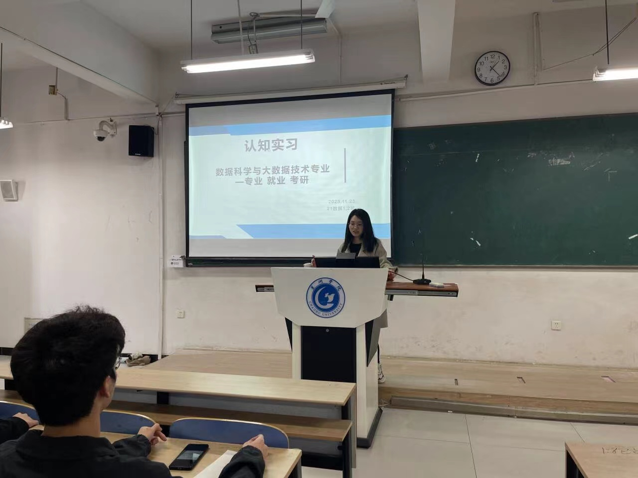 2023年11月20至26日中午在慎思楼中301教室,21级数据科学与大数据技术专业通过校内讲座的形式开展了为期一周的专业认知实习活动。专业认知实习的目的是让学生从多个视角认识本专业内涵、了解专业动态,理解诚实公正、诚信守则的工程职业道德和规范,了解国家法律法规、产业政策、知识产权和社会发展趋势等。
