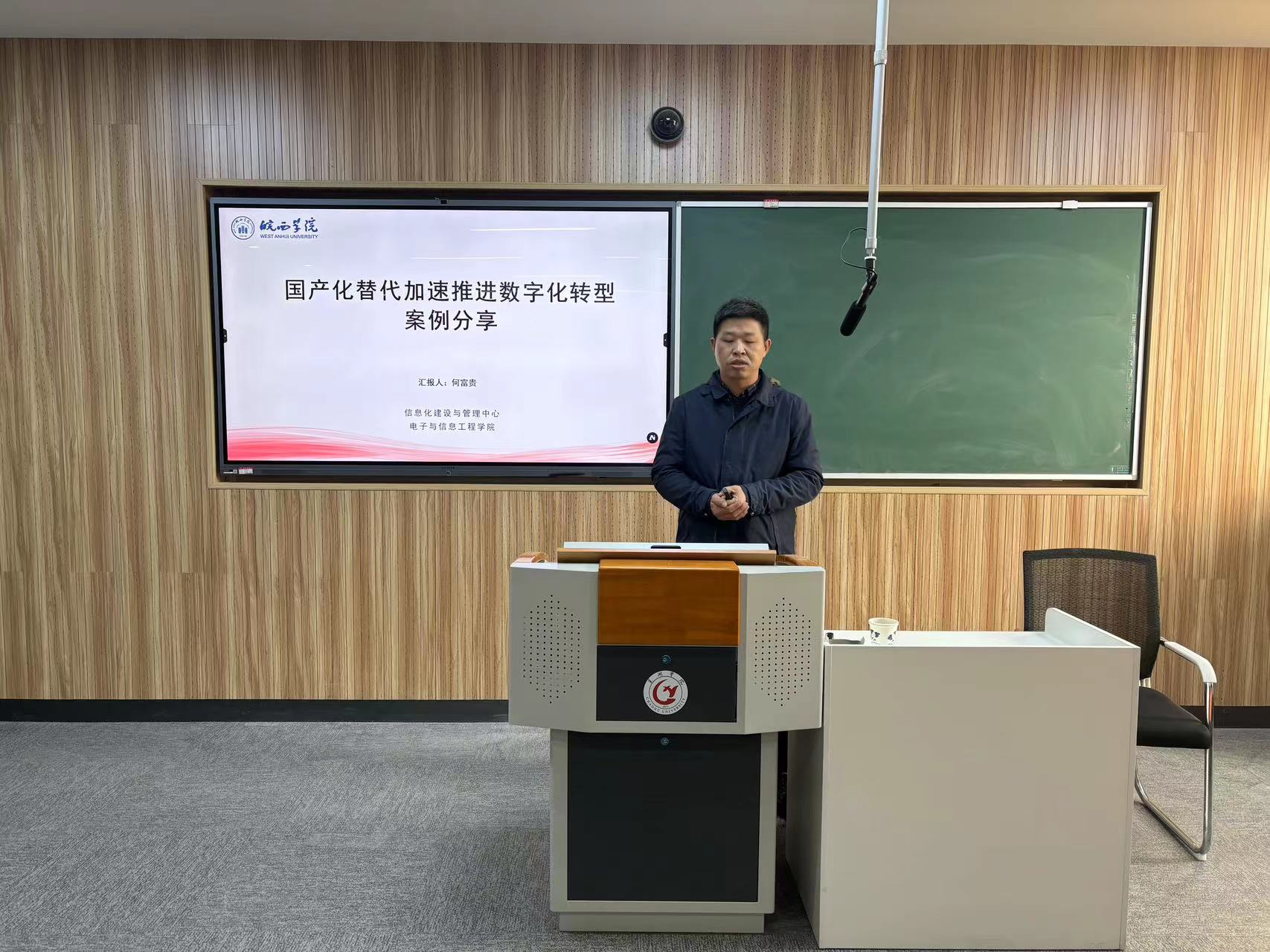 12月2日,应计算机与人工智能学院邀请,皖西学院何富贵博士来我院做了题为《国产化替代加速推进数字化转型案例分型》的讲座。会议由副院长程军主持,信息化处处长陈立钢出席会议,参会人员有必赢76net官网骨干教师,以及感兴趣的学生。