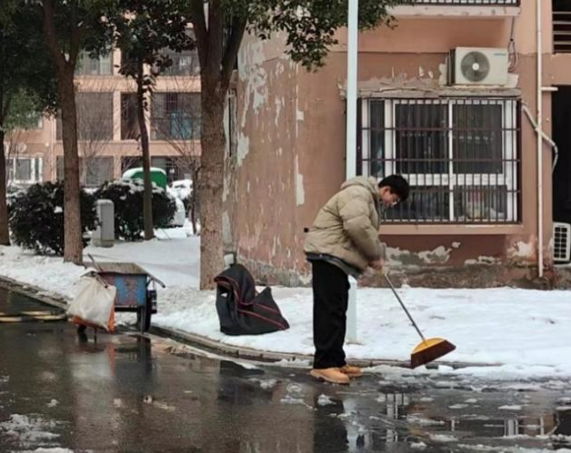 落雪心不惧,除冰暖人心。寒假期间,阜阳市阜南县迎来强降雪,给市民出行造成了不便,为了保障居民的出行安全,23级网络工程班韩君威积极响应社区号召,走上街头清扫积雪,在寒冬之际,火热行动。