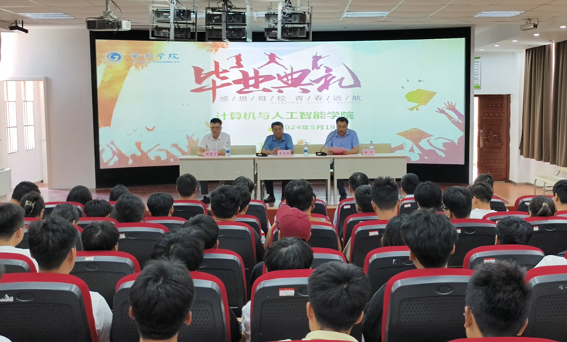 “计”往开来 梦想启航。2024年5月19日下午,计算机与人工智能学院2024届毕业典礼在博学楼二楼3D导游实训室召开,院党委书记王光富、副书记王震宇,教师代表、毕业班辅导员,以及学院2024届毕业生出席典礼,典礼由副院长程军主持。