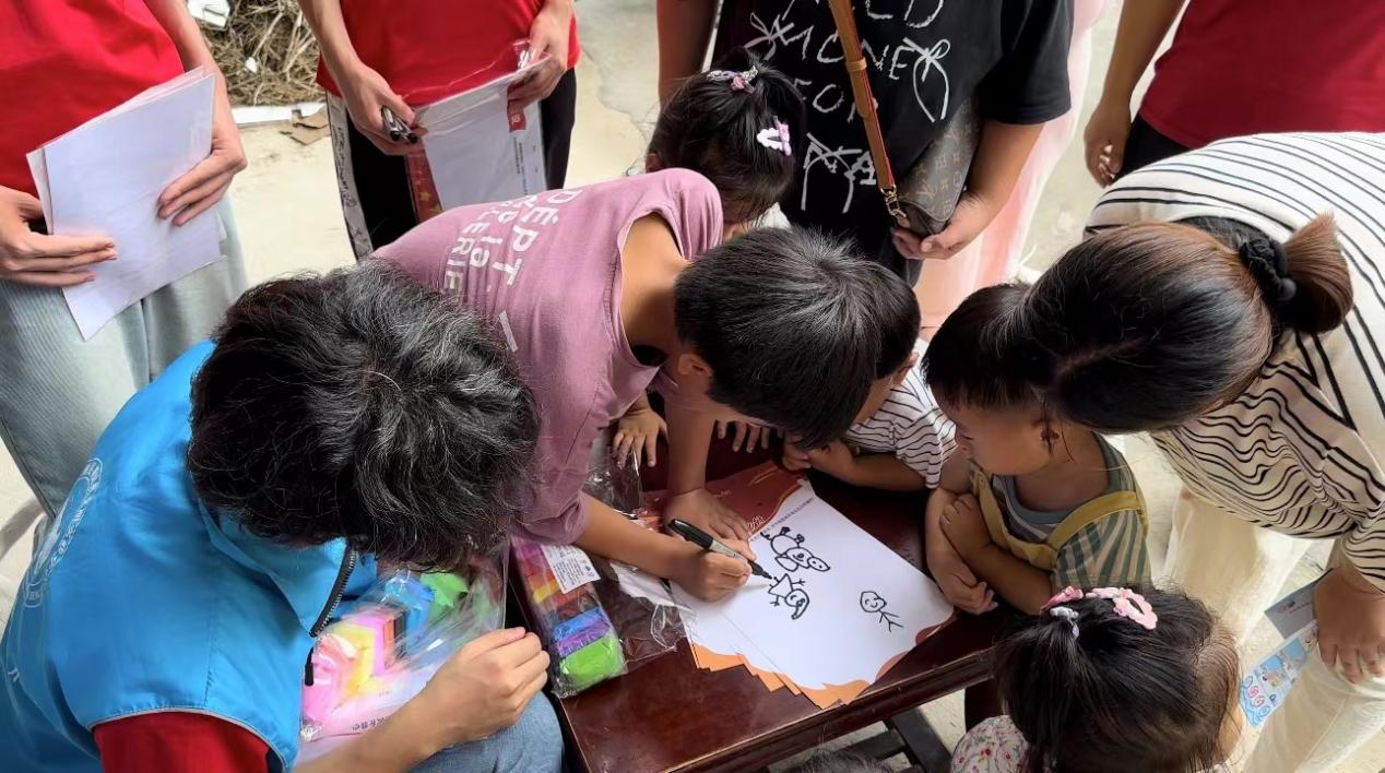 之后,同学们来到了鹿城镇三强村开展关爱留守儿童活动。志愿者们不遗余力地对困难家庭进行走访,倾听他们的故事,为孩子们送上了关怀,开展了丰富多彩的活动。最后,志愿者们给孩子们诉说了王家坝抗洪故事,向孩子们传达了不畏艰险,不怕困难、自强不息的王家坝精神。
