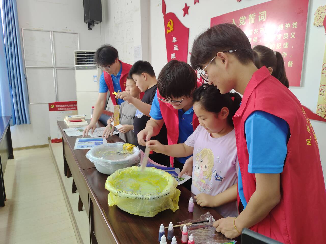 7月16日,团队全体成员到东塘社区进行志愿服务。志愿者们开展书签染色活动。活动开始前,志愿者首先向小朋友们介绍了染色工艺的基本知识和操作方法,强调了在动手制作过程中应注意的安全事项。随后,在志愿者的指导下,小朋友们制作出独一无二的染色书签。此外,志愿者们还指导小朋友们阅读图书。此次活动增强了小朋友们的自我表达能力。