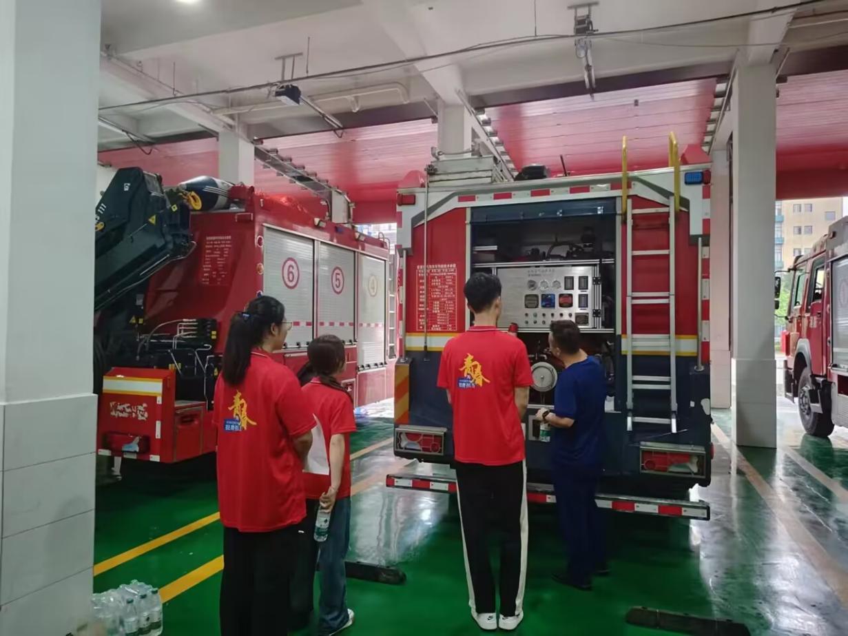 “火焰蓝下的传承—致敬新时代逆行者”,为做好暑期防火防溺水宣传,团队的第二站来到了亳州市消防站进行学习。在消防员的详细讲解下,团队成员们近距离参观了消防车,了解了车辆的结构功能、使用方法及操作要点。当了解到消防员同志们为民众创造一个安全、稳定、和谐的社会环境而日夜操劳,团队成员们无不表示由衷地敬佩。