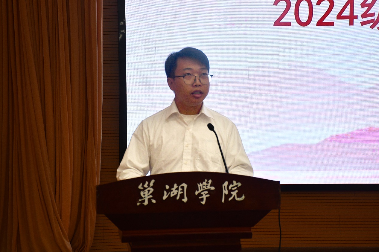 辅导员代表金而立老师表达了对学生成长的深切关怀。他期望新生在大学期间,能树立坚定信心,创立优良学风,培养良好习惯,明确奋斗目标,在求知的道路上披荆斩棘,步步坚实,迈向理想彼岸,成就人生辉煌。