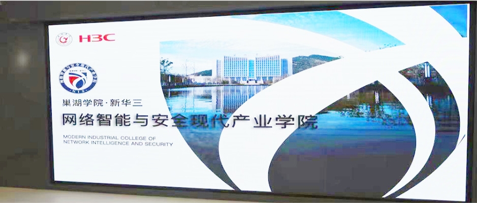 学院与新华三技术有限公司共同创办网络智能与安全现代产业学院,学院以成为国家级现代产业学院为目标,引进产业资源加入教学、实验、实践、科研等多个方面,深度促进校企合作提升办学质量,发挥合作企业在安徽网络安全领导者地位,带动学校专业高质量发展。以培养服务中国网络安全建设的技术技能人才为目标,结合合肥·中国安全谷特色产业发展定位,通过“5+4+生态体系”的方式全面提升教育教学质量,为政府机关、金融证券、网络通信等领域输送人才。党的二十大、杭州亚运会等重大活动期间,产业班多名学生被派往深圳、珠海、杭州、合肥等地,为企业机关提供网络安保服务,其中2021级陶韵江同学在校期间已创立合肥巢安网络信息安全软件有限责任公司。