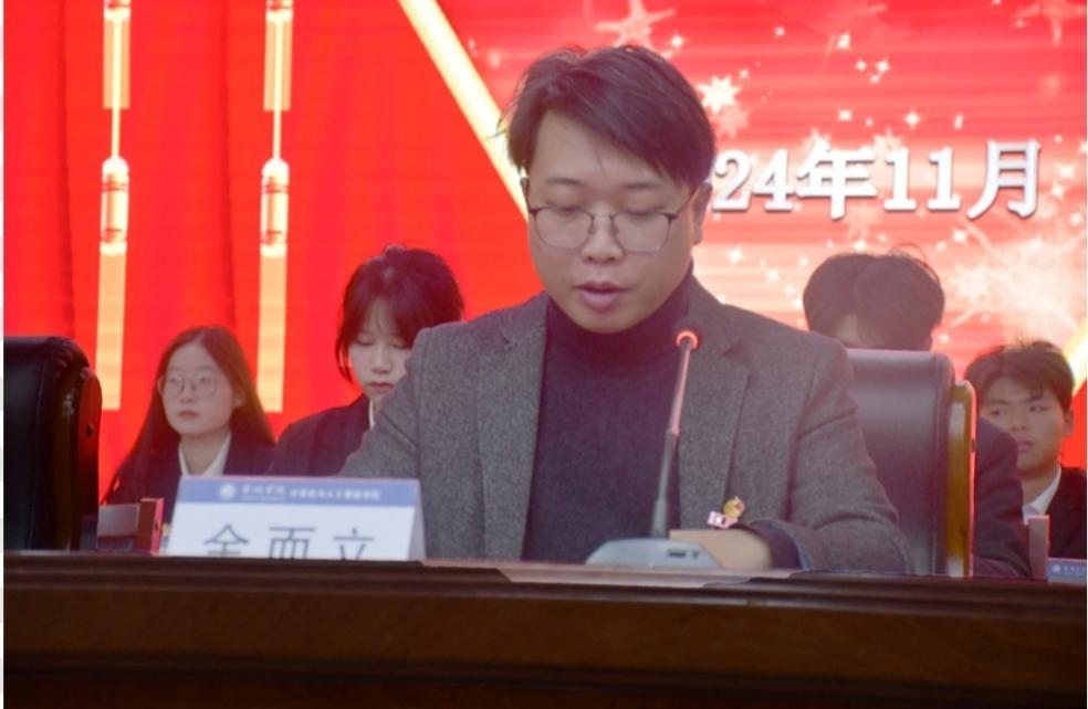 王震宇代表学院党委对学院团委、学生会近年来的工作给予了充分肯定。他对学院团学工作提出四点要求和希望:要坚定政治立场,强化思想引领;要保持自我革新,发挥模范作用;要直面发展问题,全面深化改革;要围绕青年成长,提高服务能力。他嘱咐同学们在民族复兴的关键时期,青年学生应该自觉把“小我”的青春奋斗融入“大我”的时代洪流之中,为全面建设社会主义现代化国家、全面推进中华民族伟大复兴的中国梦奉献青春力量。
