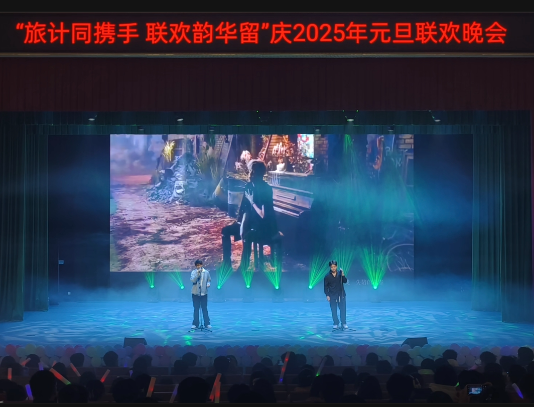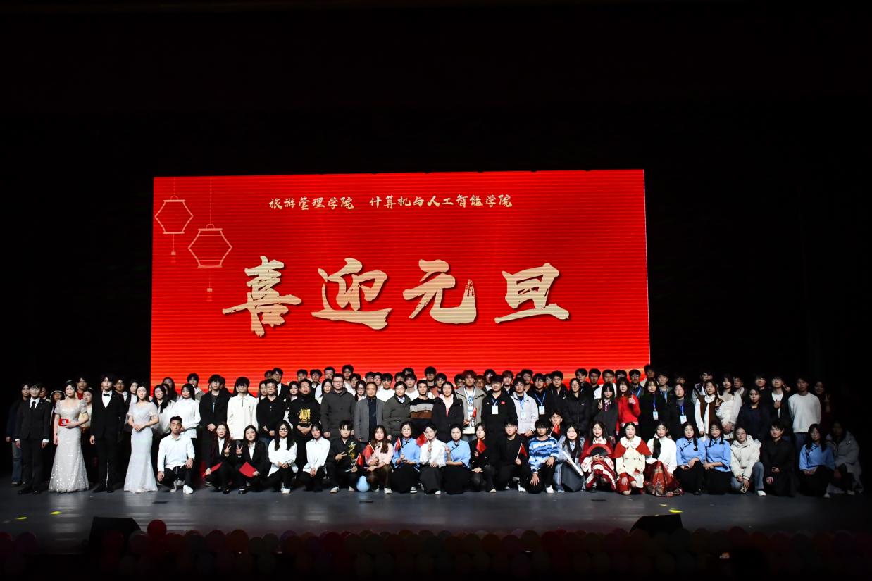 新年肇起,华章日新,旦逢良辰,顺颂时宜。12月27日晚,计算机与人工智能学院与旅游管理学院在大学生活动中心大礼堂共同举办2025年元旦联欢晚会。旅游管理学院党委书记洪作奎、计算机与人工智能学院党委副书记王震宇、旅游管理学院党委副书记邓其志以及学校师生800余人到场观看。