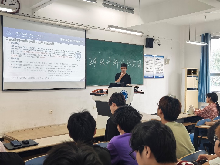 2025年5月28日下午,计算机科学与技术专业在慎思楼北203教室成功举办了一次专业认知实习活动,2024级121名本科生参加。本次活动特邀中国科学院合肥物质科学研究院张文副研究员作专题报告,旨在帮助学生们深入了解专业发展前沿,明确学习方向。