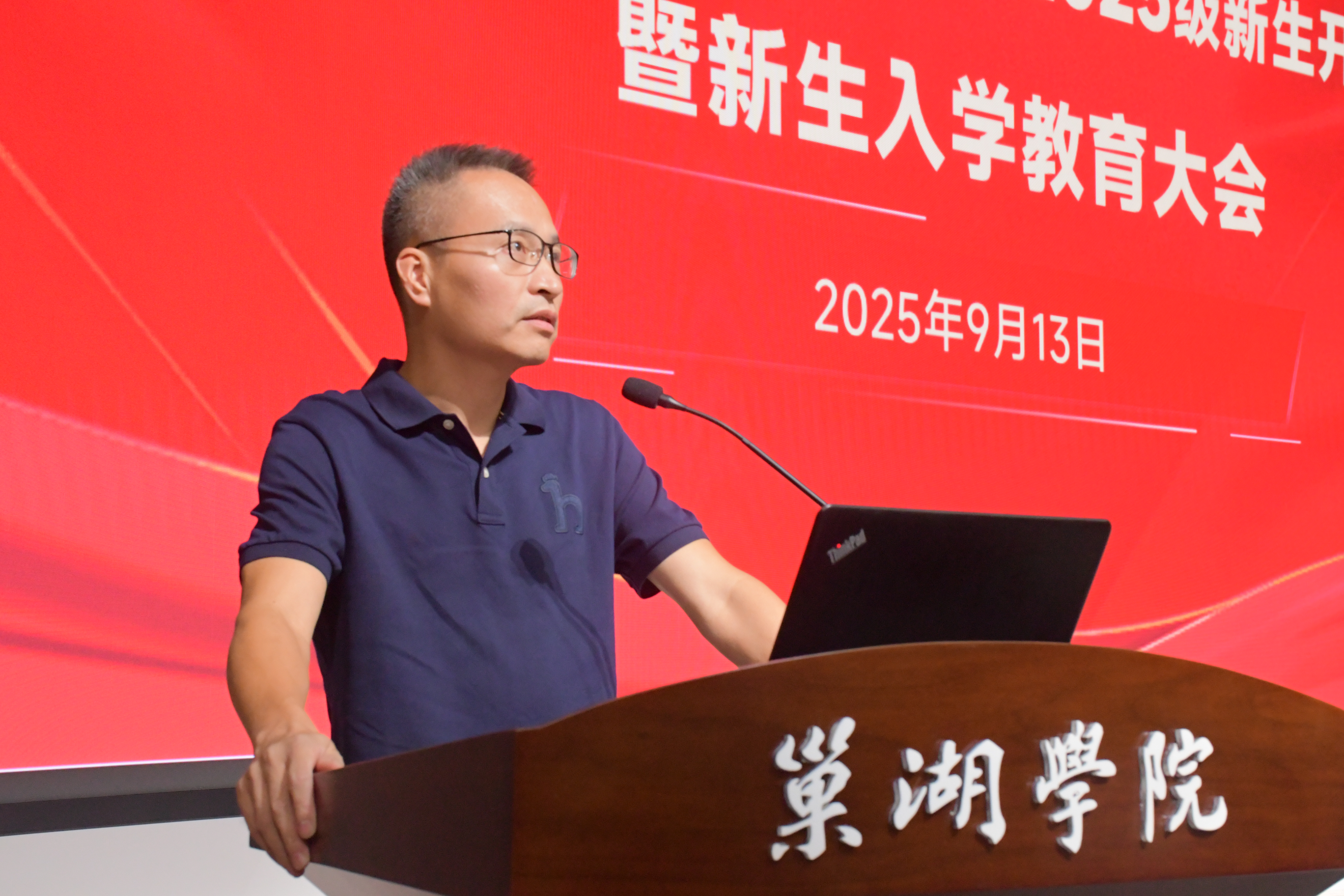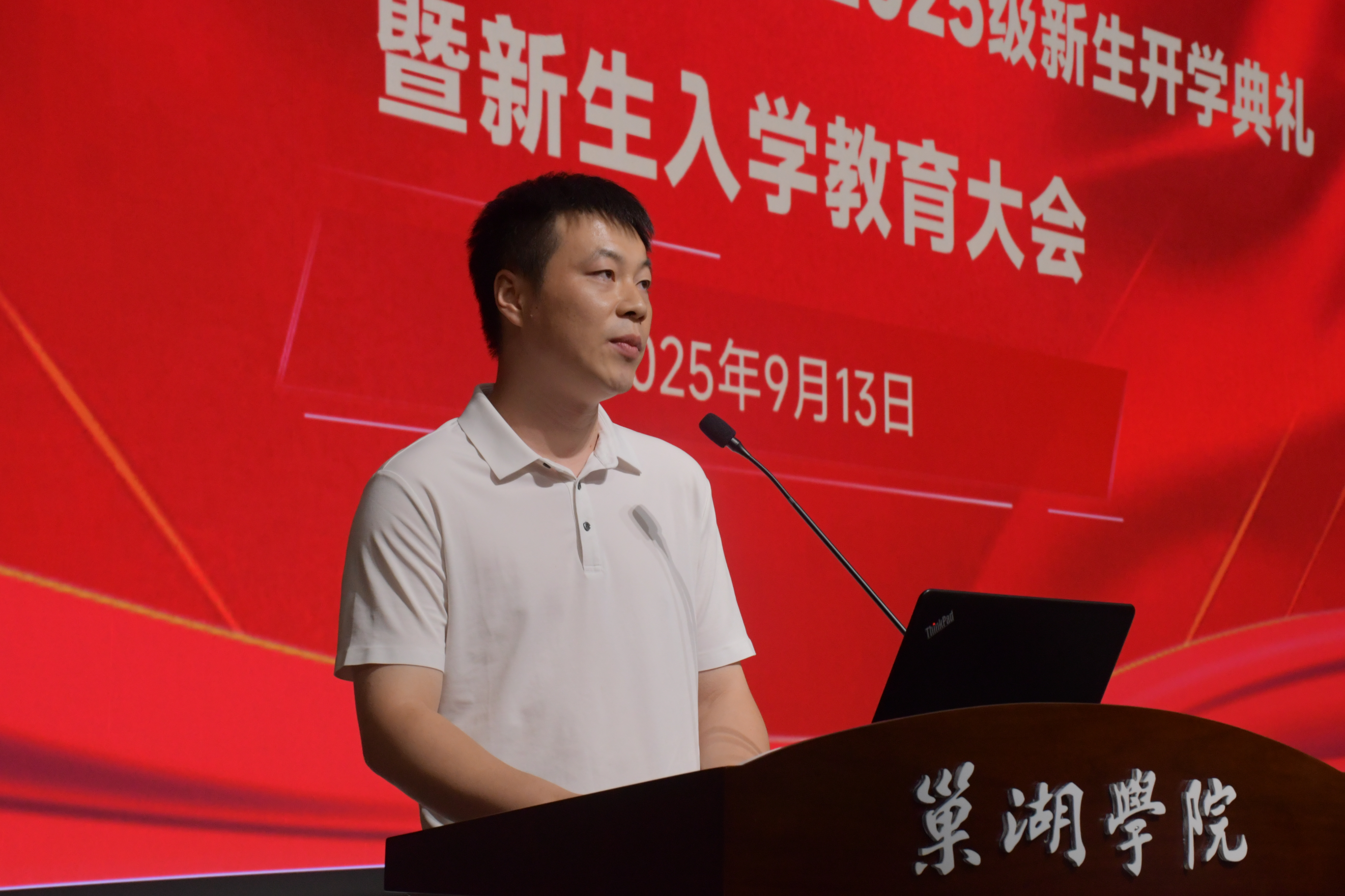 教师代表曹骞教授寄语全体新生,希望同学们珍惜韶华、奋发有为,在巢院书写无愧于时代、无愧于国家、无愧于自己、无愧于未来的青春篇章。