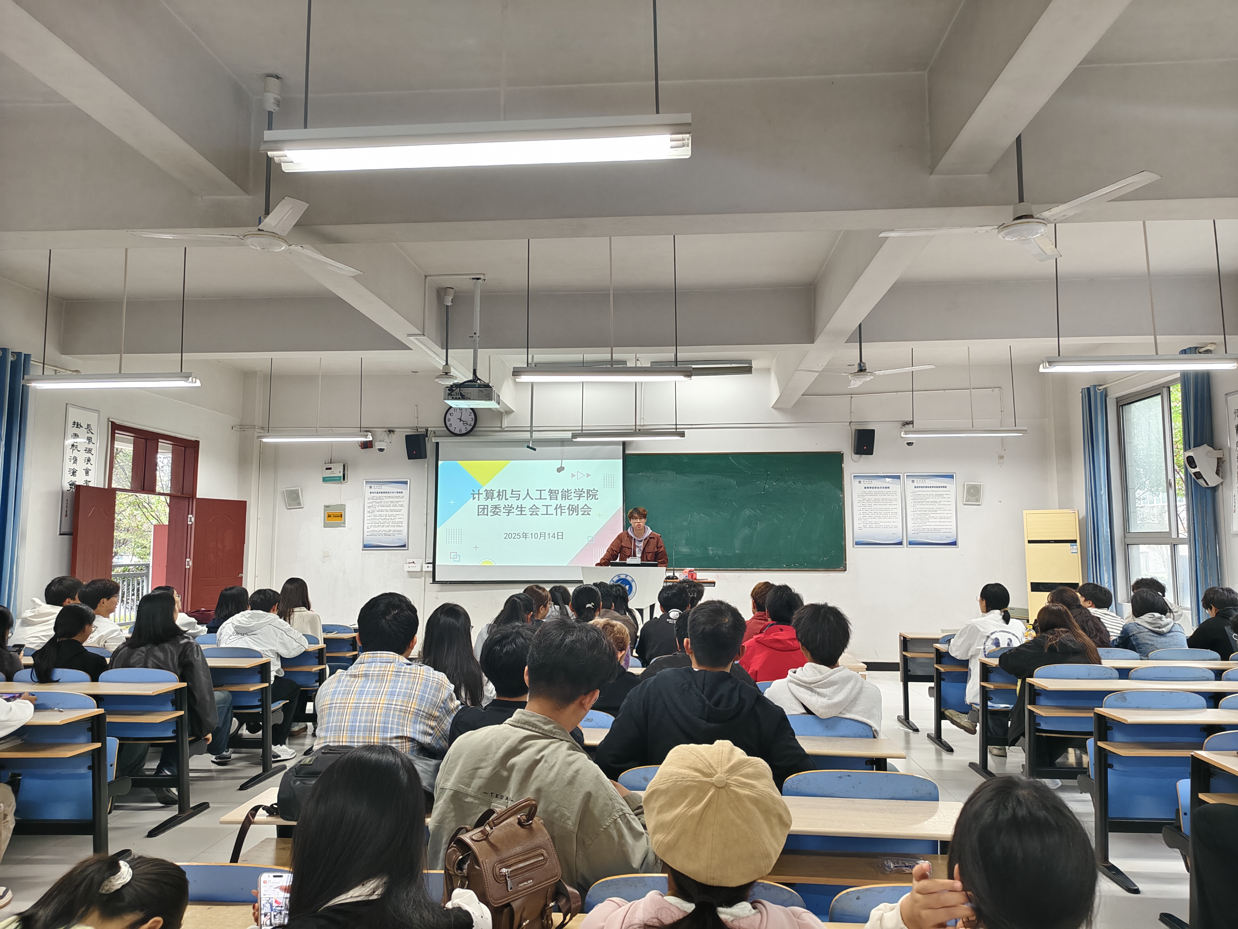 为欢迎新加入的学生会成员,加强团委、学生会队伍建设,为新学期团学工作提质增效,计算机与人工智能学院团委学生会于10月14日在慎思楼中102举行了第一次骨干培训会议,学院学生会全体成员出席了本次会议,会议由团委副书记杨倩主持。